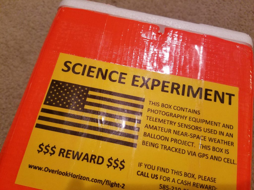 Sadly, our cameras did not last very long during the flight. The first camera was supposed to take still photos, but ended up recording nothing. The camera was accidentally switched from photo to video mode after it was powered on and while it was being packed into the payload just minutes before launch. This camera only had a 2GB SD card (it’s old, that’s all it supports) and was actually taking videos. The memory card quickly filled to capacity before liftoff even occurred. At the end of the live broadcast, I make mention of an unknown beeping sound. It turns out this was the camera providing a “memory card full” error every time it was being instructed to take a photo. The second camera worked well, but was the camera we were having difficulty with prior to launch. The high capacity and brand new batteries we used was providing too much voltage and the voltage regulator needed to be adjusted. Adjusting it would’ve been a longer delay and our launch window was closing. We opted instead to insert used batteries which slightly dropped the voltage enough for the camera to operate. Unfortunately, this meant the camera only lasted about 45 minutes into the flight (40,000 ft.) before losing power for good. Next time, we’ll have the full battery pack in use to get a longer battery life.