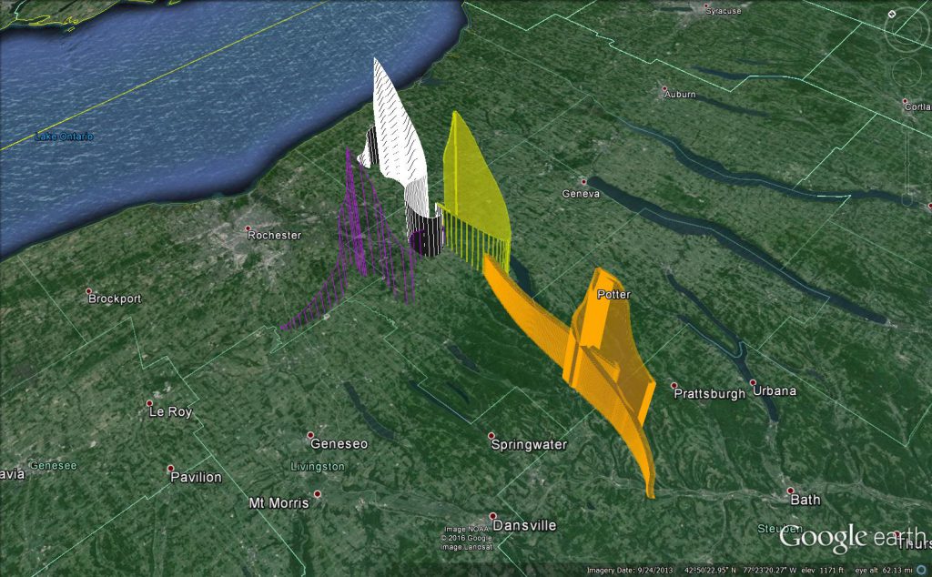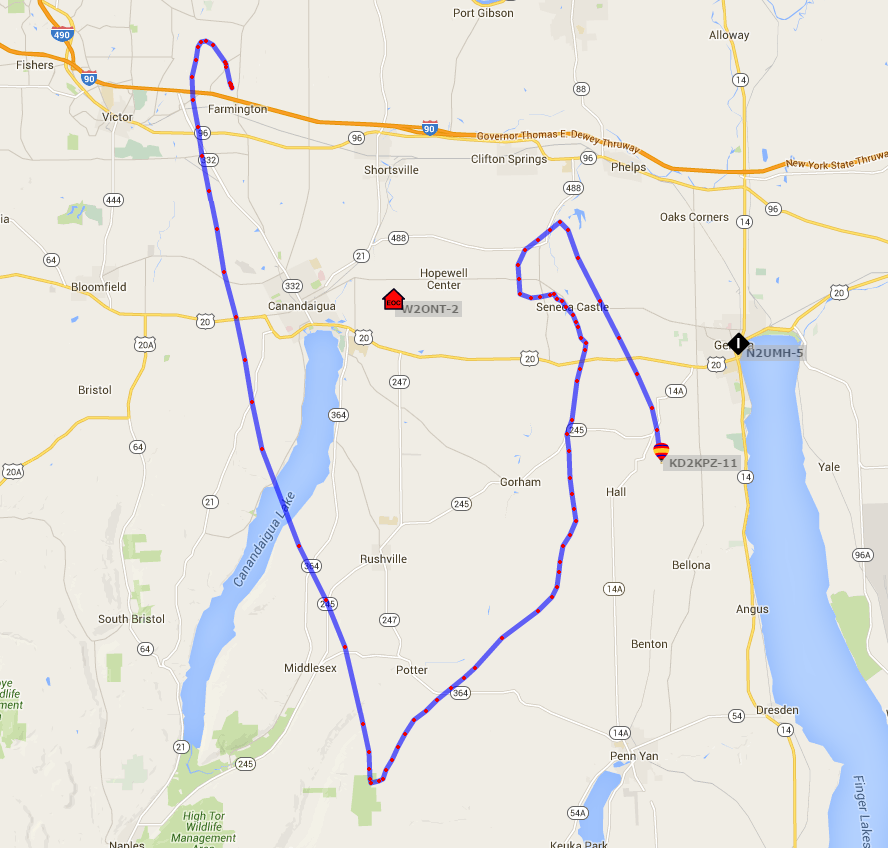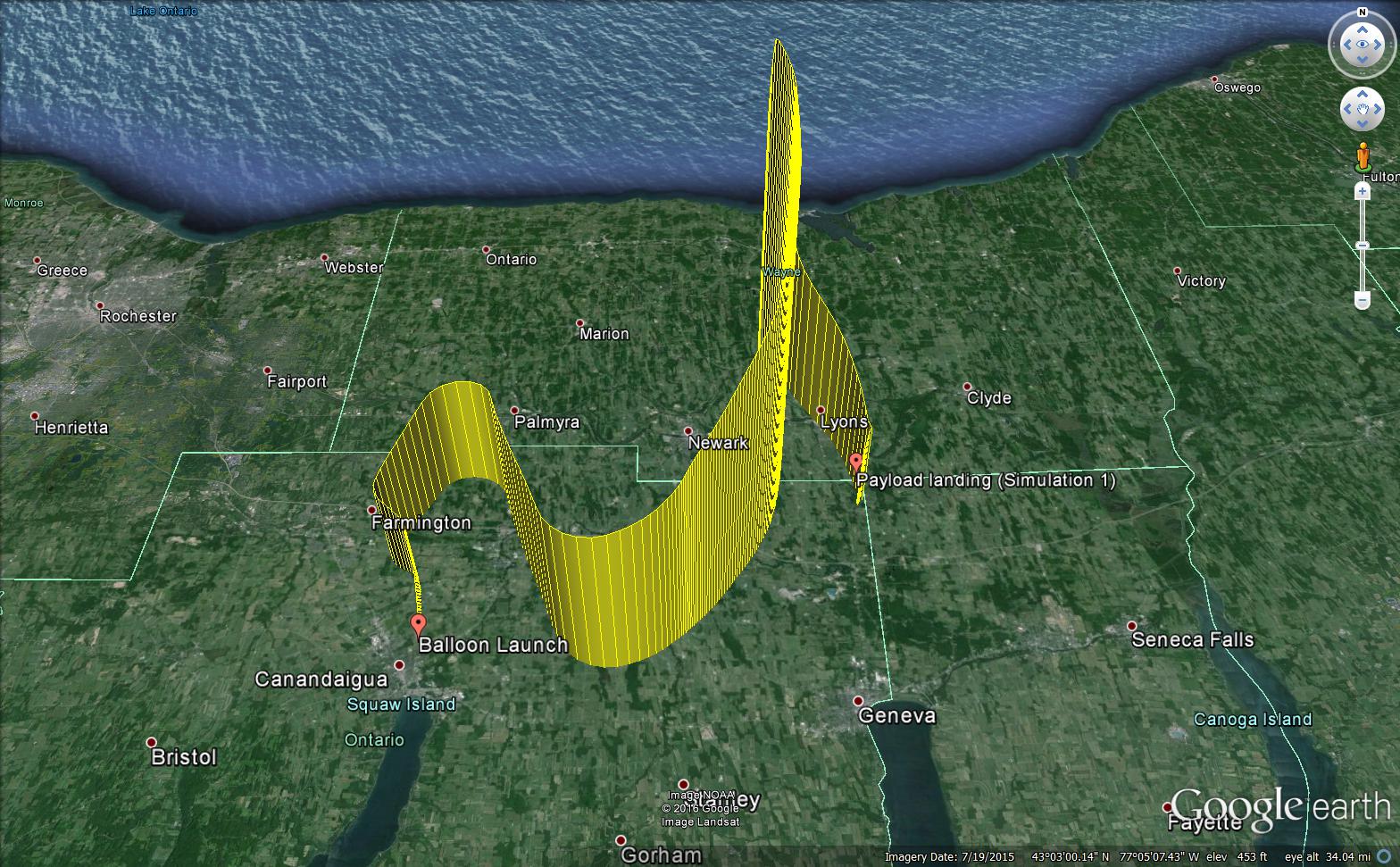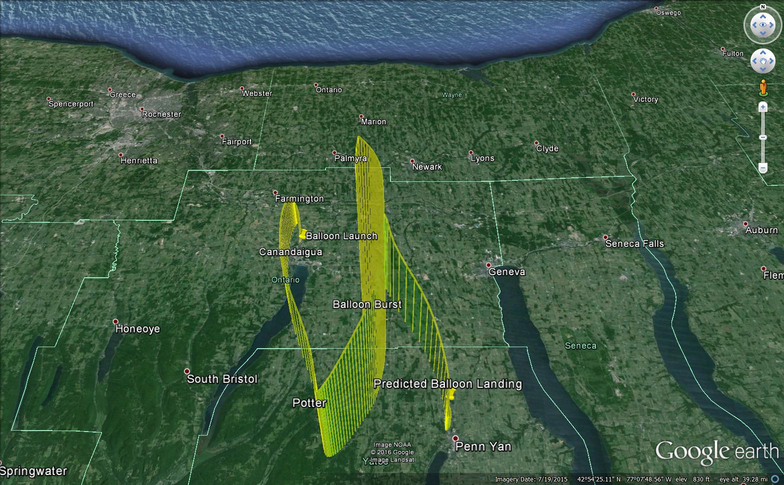 Prediction #1 from CUSF had us landing somewhere in the Penn Yan area. This prediction’s flight path shape seemed to be the most accurate to the actual flight path. Our launch time was delayed by an hour, so it’s tough to say for sure, but the actual flight path most closely resembled this.