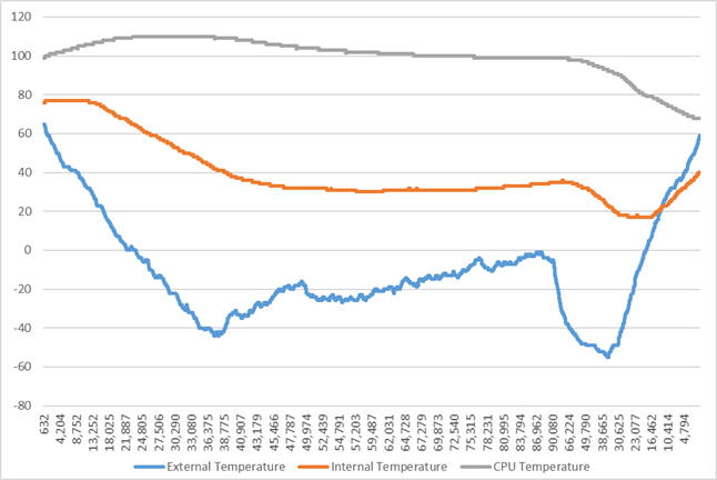 In addition to that, the launch itself was nearly a disaster due to the strong winds. At liftoff, a strong gust of wind pulled the balloon horizontal which caused the payload not to lift, briefly. The payload crashed into the ground and we heard one of the radio transmissions stop mid-transmission. This was a heartbreaking thought as we thought the flight was over before it was even 1 ft. off the ground. Luckily, the unit continued transmitting. We later discovered that the crash on liftoff caused the battery pack cover to dislodge and we can hear on the liftoff video when the Arduino reboots and goes through its power-up sequence as its lifting off. The Arduino would go on to power cycle (reboot) 14 times throughout the flight due to the batteries being loose with the dislodged cover. It’s amazing that it even kept transmitting.